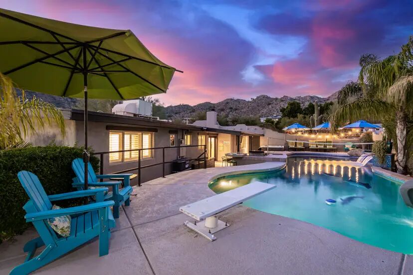 Paradise Valley is where Phoenix’s most spectacular pool rentals are concentrated. Estate homes with negative-edge pools overlooking Camelback or Mummy Mountain, full outdoor kitchens, fire pits, and putting greens. Budget $450-1,200+/night. This is the right choice for milestone celebrations, corporate retreats, or multi-family bookings where the pool experience itself is the centerpiece.