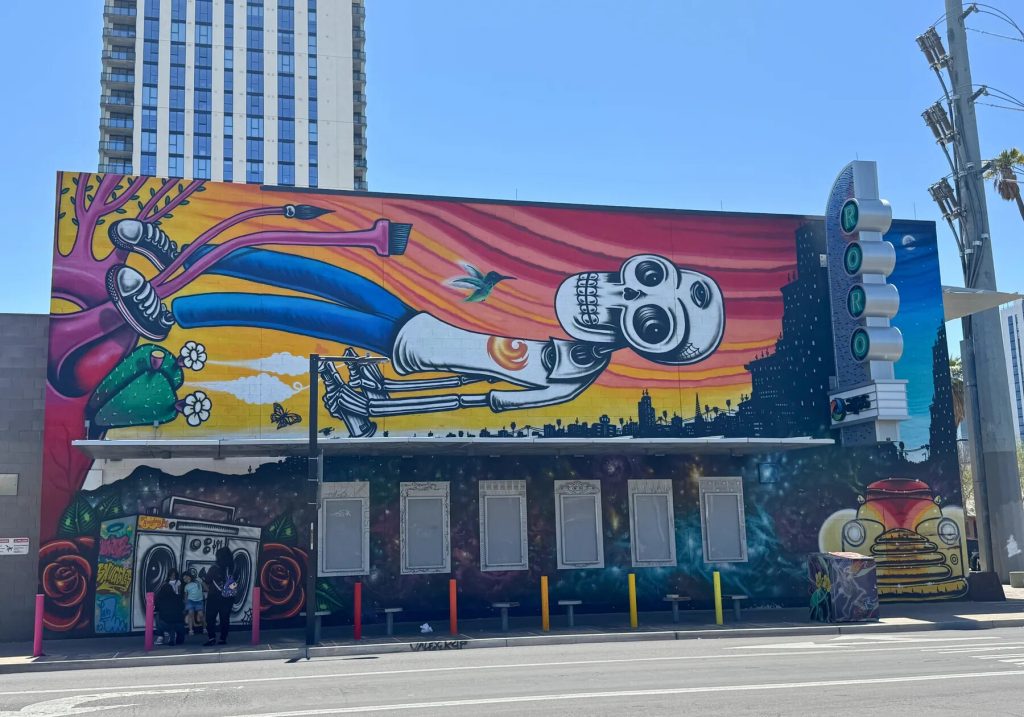 Roosevelt Row is Phoenix’s arts district and the most walkable neighborhood in the city — which sets it apart from almost everywhere else in the metro. Food halls, murals, live music, independent galleries, and James Beard-recognized restaurants are all within walking distance. If your trip is centered on eating, drinking, and culture rather than hiking and pools, this is your neighborhood.